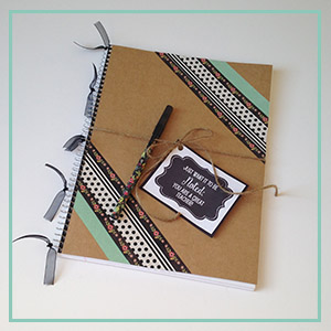 Craft your own DIY Embellished Notebooks or buy some pretty notebooks at the store. Tie a string or ribbon around notebook, adding the Noteworthy label to the string before you tie the bow. Add a cute pen to complete the theme.
