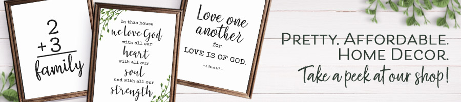 I created my frames using prints from the More Like Grace shop, a quick & cheap way to download designs that you can use TODAY. Â But I think they’d also look great featuring family photos, travel posters, or your own artwork too.