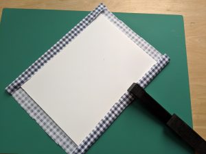 Cut your foam board to 12″ x 14.” I used my rotary cutting mat and guide to measure my cuts, and then did the actual cutting with an exacto knife.