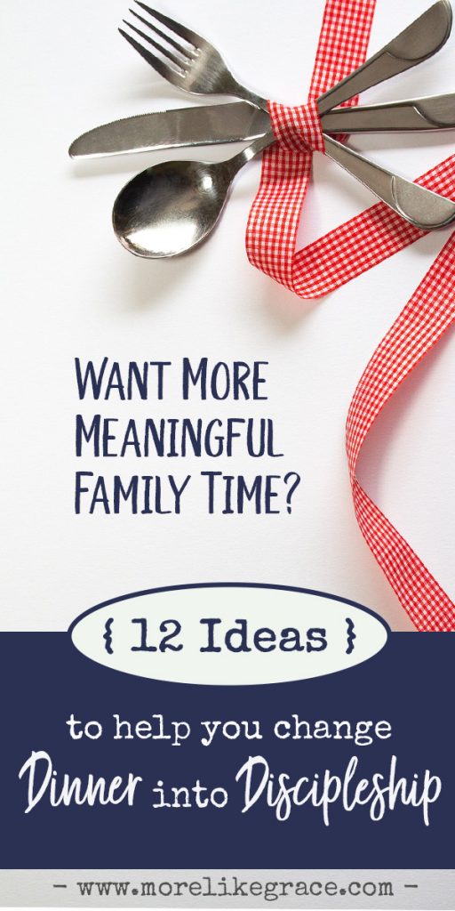 Today, I’m sharing a few of the ideas that have helped me bring Jesus to my own family table over the years. They haven’t made every moment perfect—we’ve had our share of tears, fights, and disasters over the years, to be sure. But God has showed up in some precious moments around our table, and these are a few of the ideas that made it happen.