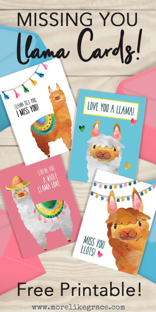 If you’d like to grab a set of llama cards to use with your kids, you can grab the free printable by clicking on the blue button below. Â (If you need ’em, you can grab some notecard envelopes easily here.)