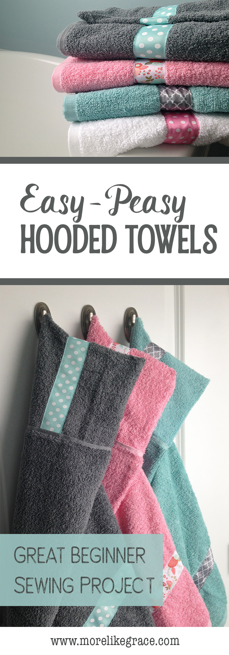 Over the years, I’ve sewed up quite a few of these towels for other family and friends—and I started adding a little ribbon on the edge for a decorative touch. (Trust me, once you see one of these nice, big, thirsty towels, you’ll never want to buy another so-called “baby towel” for anyone again!)