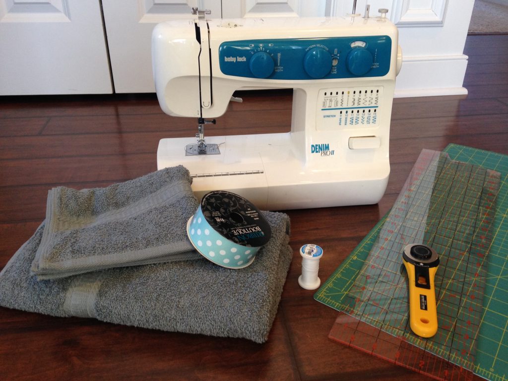 - ribbon (Measure the width of your bath towel. Multiply that number be 2. Then add 2.”)