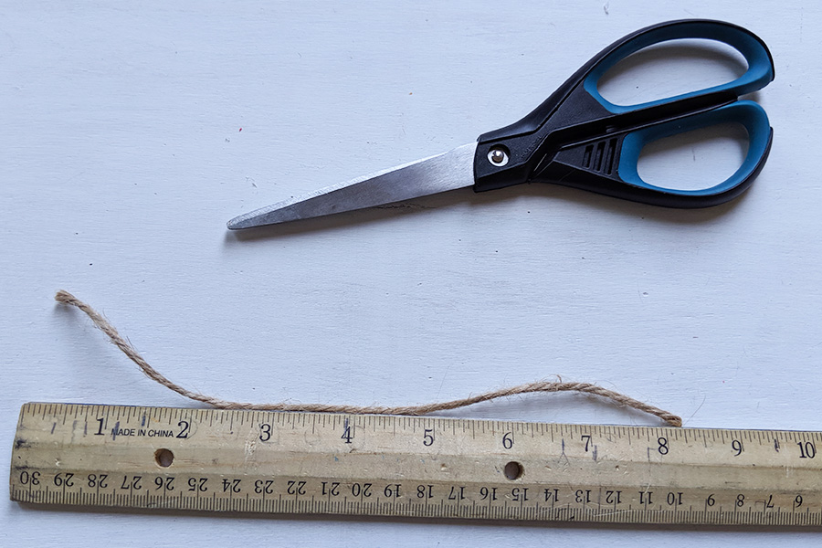 - CUT: Cut a length of ribbon/twine approx. 8″ long.