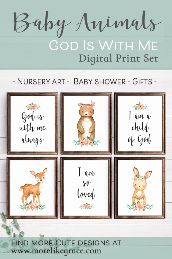 These adorable woodland animals remind little ones that God is always with them, and they’re always dearly loved. They make a lovely addition to your baby’s nursery or baby shower decor. Or give this set of four nursery prints as a thoughtful baptism gift, or a baby shower gift for the mom-to-be!