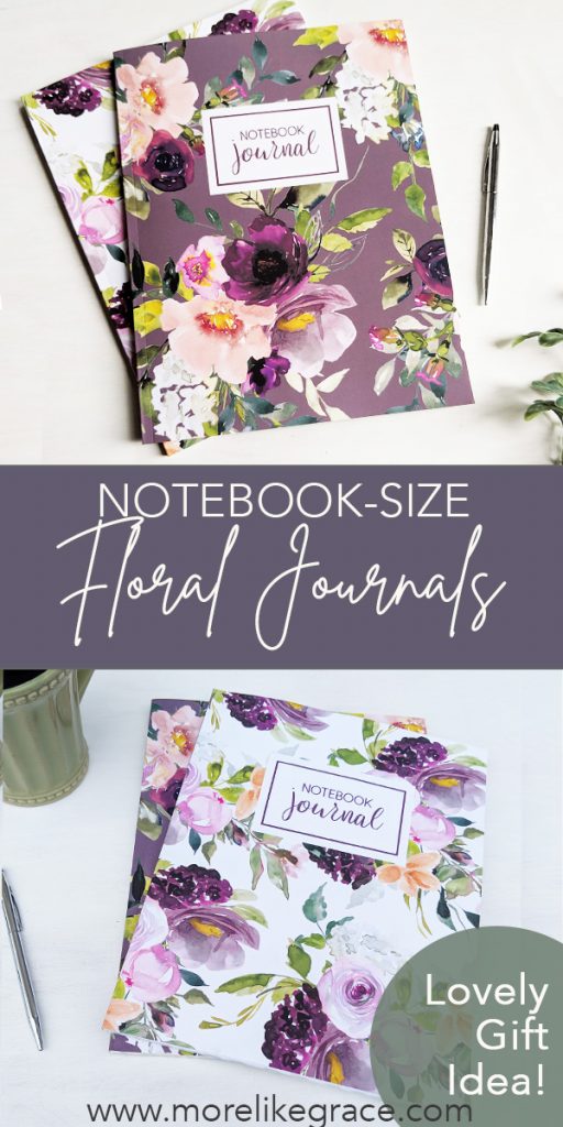 This gorgeous purple floral journal/notebook features a premium matte cover and 110 college-ruled pages, ready to be filled with all your notes and ideas! The convenient 8.5×11 size gives you plenty of room to write, making it great for journaling, note taking, Scripture writing, or prayer journaling. Interior pages feature a lovely floral accent that makes this notebook something extra special.  Treat yourself to a special place to write your thoughts–or grab a copy for a friend.  This journal makes a beautiful gift!