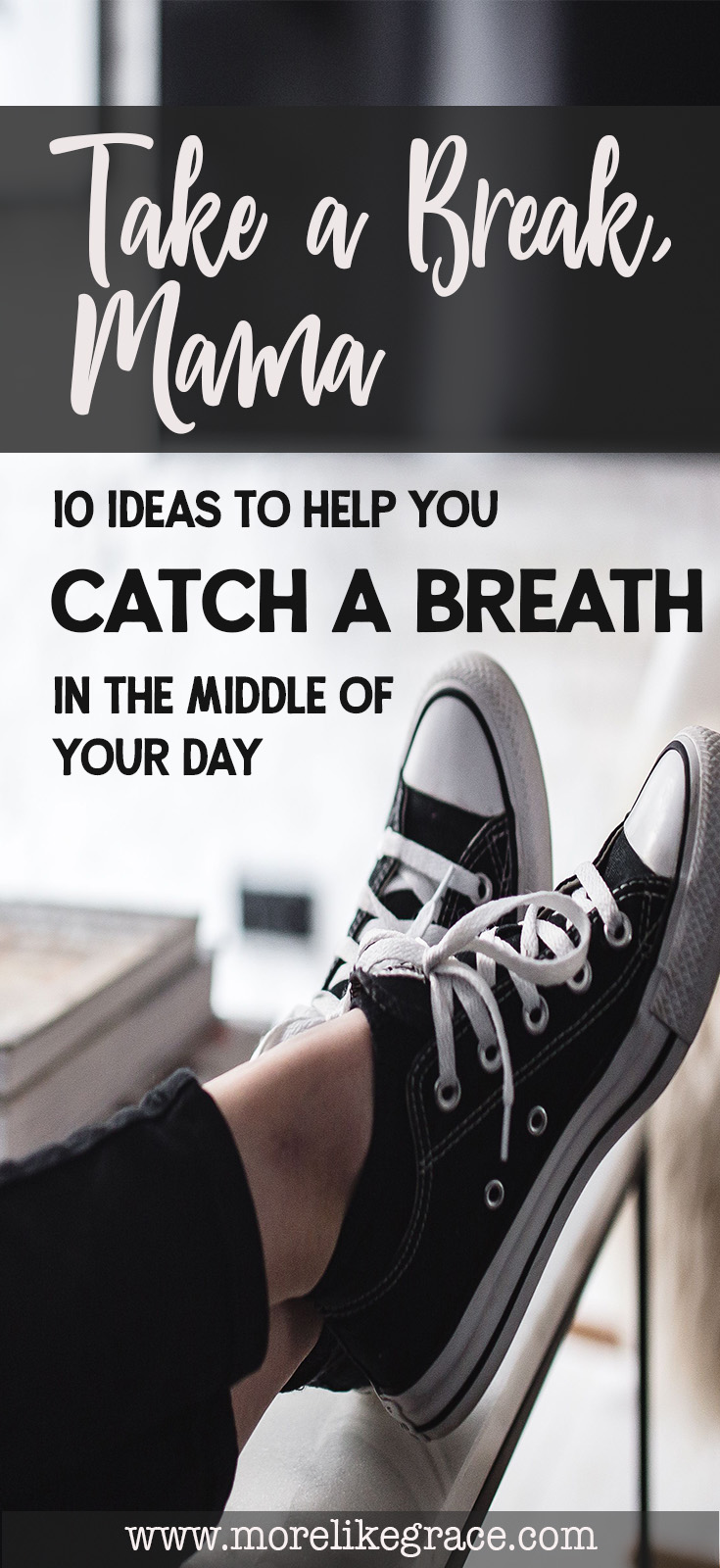 Listen to some music. I’ve got a couple of playlists I’ve put together on Spotify for moments when I just need to remember who God is—and who I am in His eyes. Some are worship songs, some songs wrestle with finding truth in the hard stuff, and some of the tunes speak to me with no words at all. If you need to catch a breath, try closing your eyes and simply letting a song fill your heart.- Read a book or blog post. Ten minutes isn’t enough time to dive into a deep Bible study. But it’s the perfect amount of time to read a chapter from that encouraging book you planned to read someday. If books aren’t your thing, try subscribing to a blog or two so you’ll always have a few ideas sitting in your inbox.
