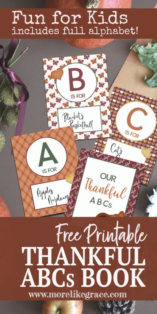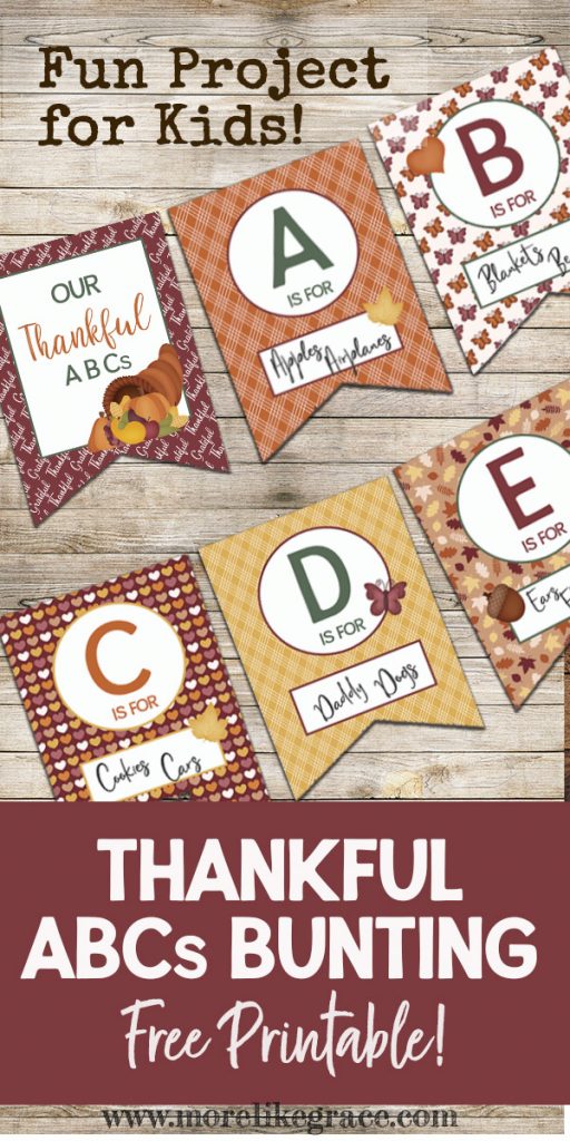 Just grab whichever style you prefer–the bunting or the book–and gather your kids together to jot down all the things you’re thankful for, from A – Z!