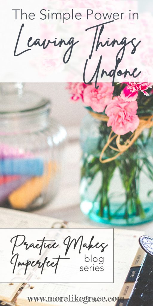 As I’ve pursued the practice of “leaving things undone,” you know what I’ve noticed? I still work hard and get a lot done through my days. But when I set my own tasks aside to honor my God-designed need for rest, God’s keeps doing a quiet work in my heart. Bit by bit, choice by choice, those perfectionist lies are fading and being replaced by peace. Time after time, God reignites my purpose and passion for the days ahead.