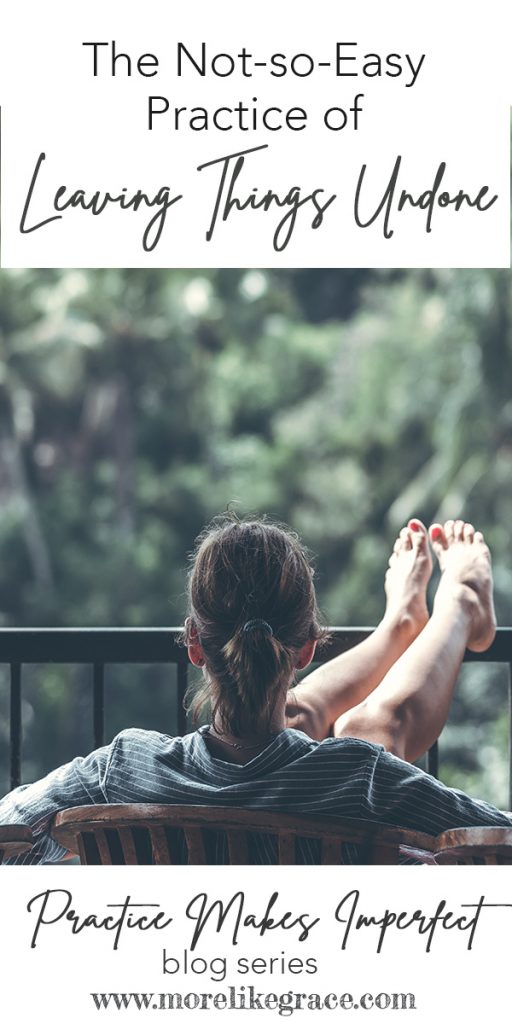 I sleep much better these days. (Although I will admit that control and anxiety still flare up from time to time, especially when pandemics hit our world!) Deconstructing those perfectionistic lies has helped me breathe a little easier, remembering God’s role is the hero–not mine. But it didn’t happen by accident. It happened with practice. With a particular spiritual practice I call “leaving things undone.”